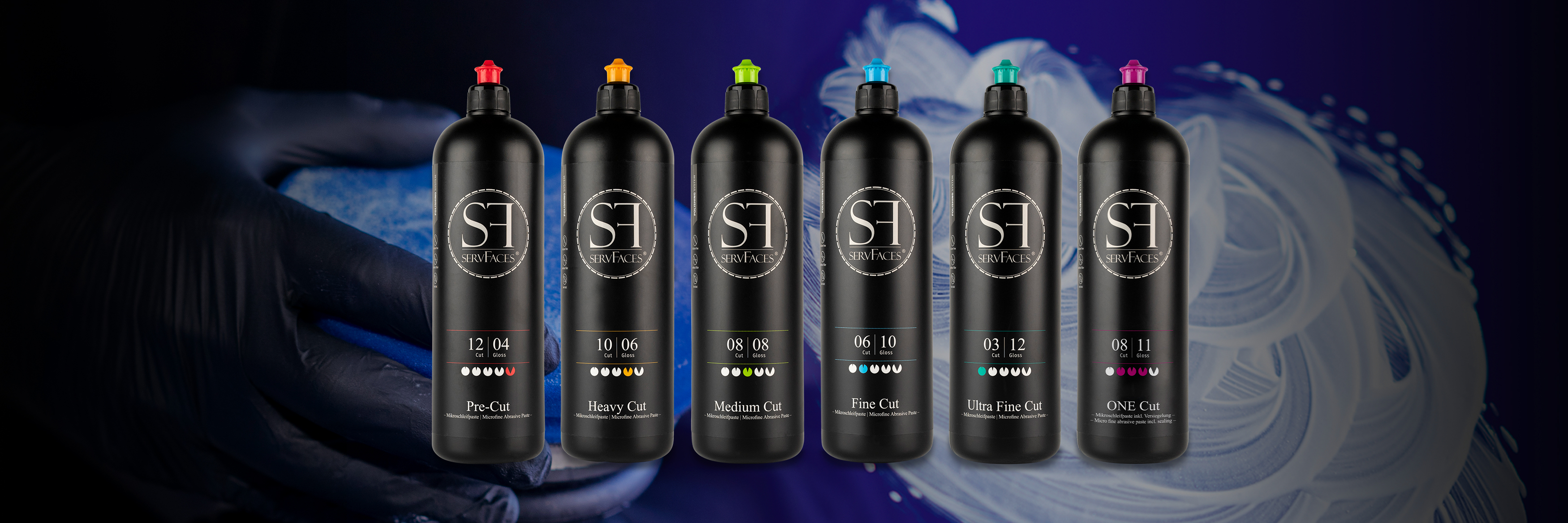 Глубокие царапины или лёгкие следы эксплуатации - не имеет значения. С новыми высокоэффективными полировальными пастами servFaces вы получите идеальный результат восстановления лака в любой ситуации. Инновационная цветовая маркировка делает процесс ещё быстрее, удобнее и эффективнее, экономя ваше время и обеспечивая безупречный финиш.